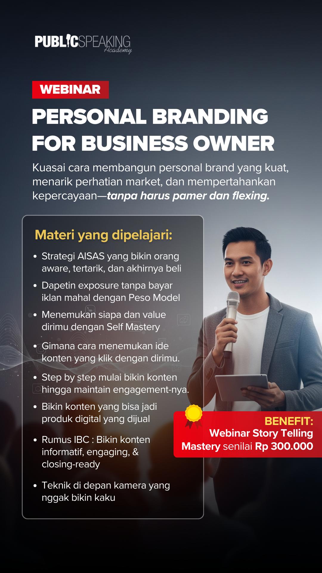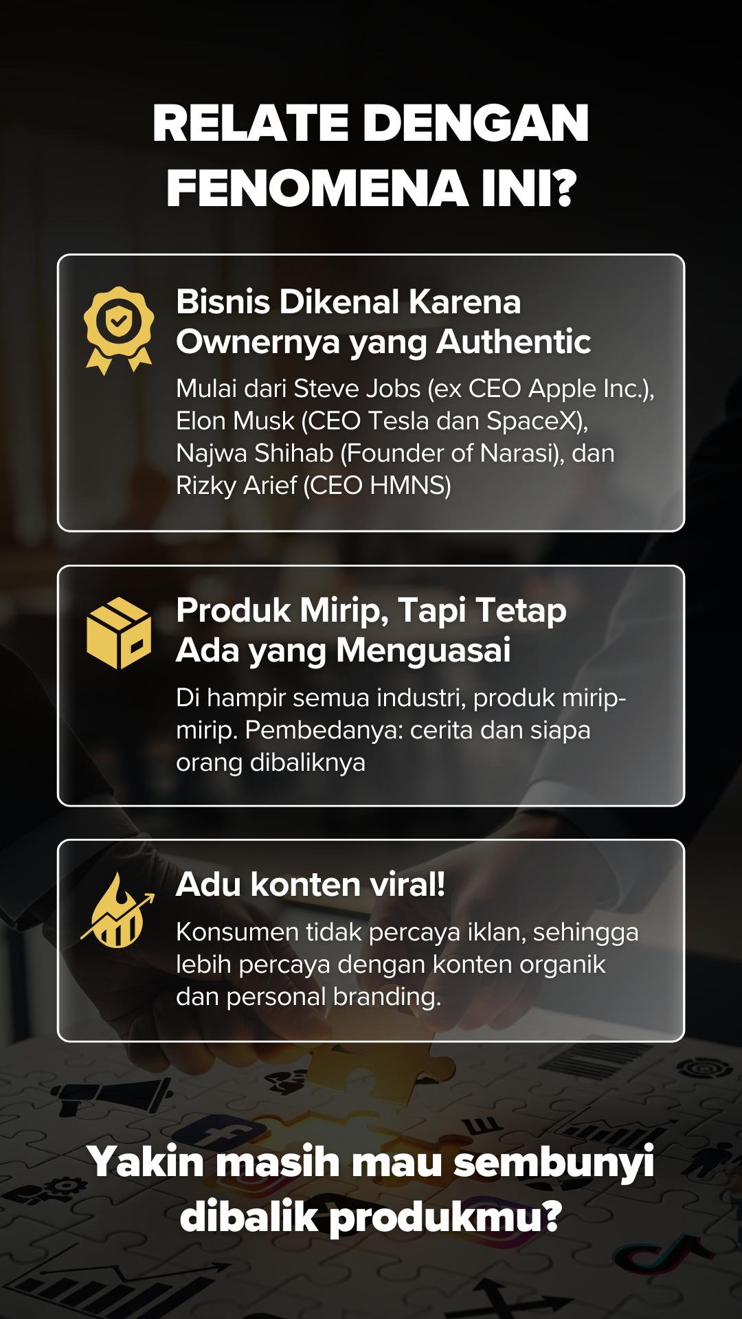 Webinar yang bantu kamu jadi wajah utama brand yang dipercaya konsumen dan naikin revenue —tanpa harus viral, tanpa harus jadi influencer.